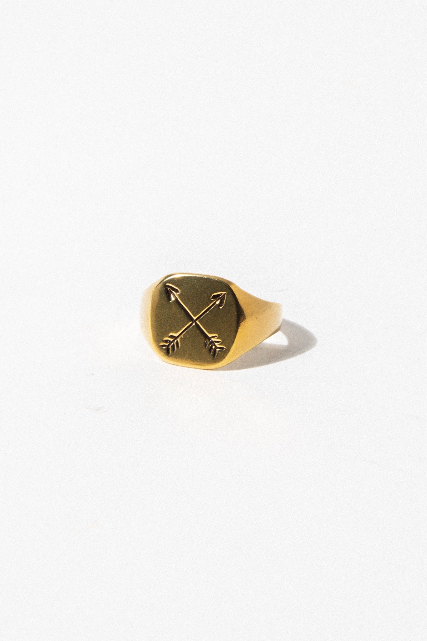 This signet ring features two crossed arrows, a common Native American symbol for friendship.