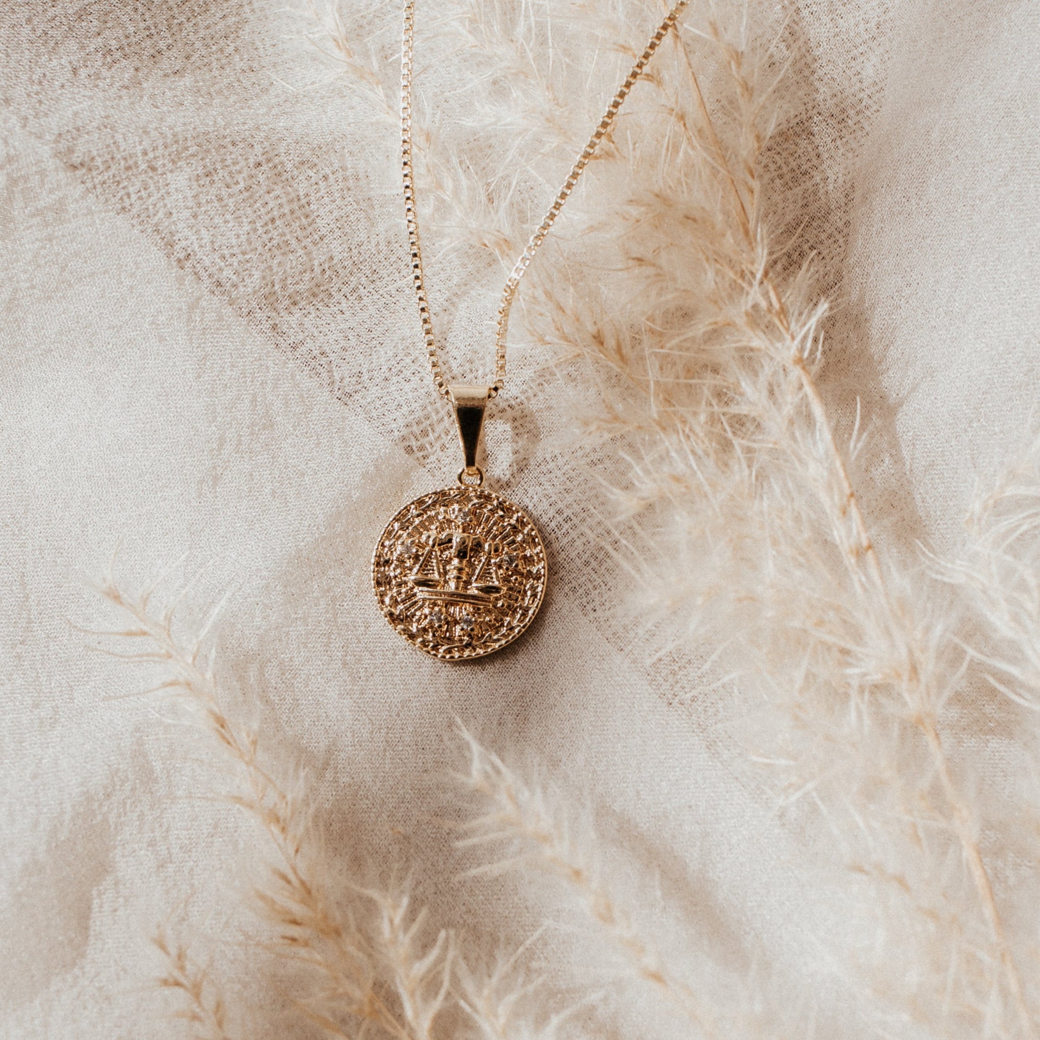 Adorned with 18K Gold Filled Astrological Pendant Adorned with CZ Stones